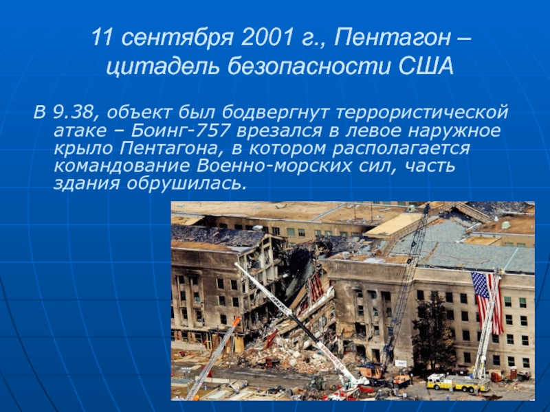 Слайд 1011 сентября 2001 г., Пентагон – цитадель безопасности США