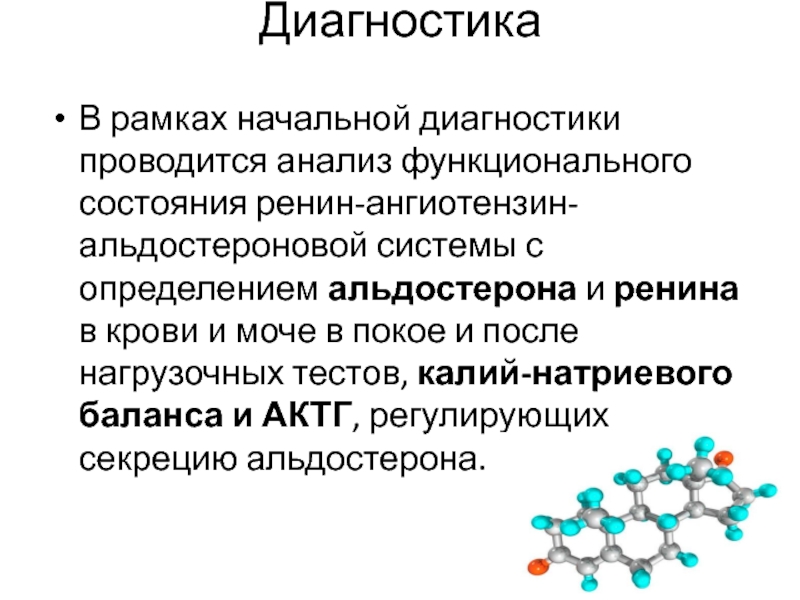 покое и после нагрузочных тестов, калий-натриевого баланса и АКТГ, регулирующих секрецию альдостерона.