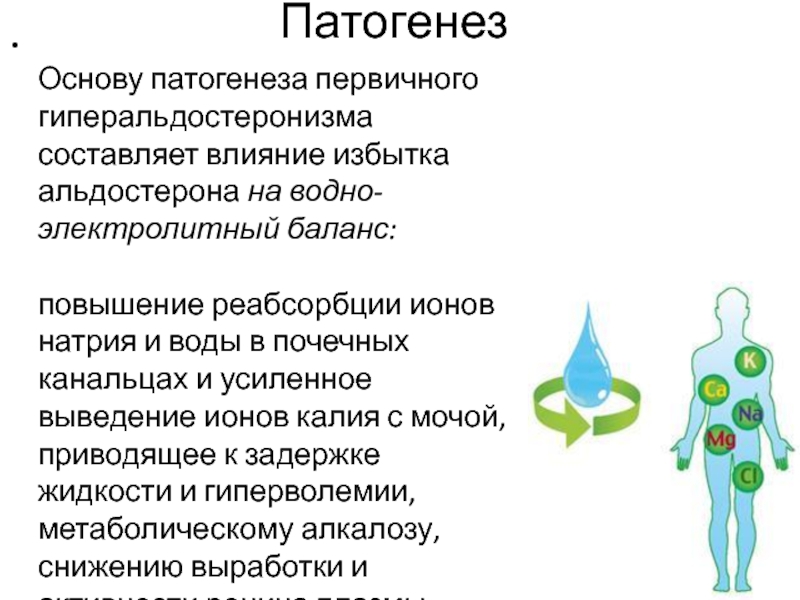 Основу патогенеза первичного гиперальдостеронизма составляет влияние избытка альдостерона на водно-электролитный