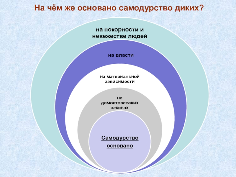 Вывод. Дикой -- ругатель, грубиян, самодур; чувствует свою власть над людьми.