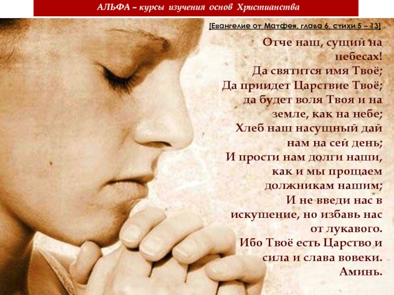 ибо знает Отец ваш, в чем вы имеете нужду, прежде вашего прошения у Него. Молитесь же так: