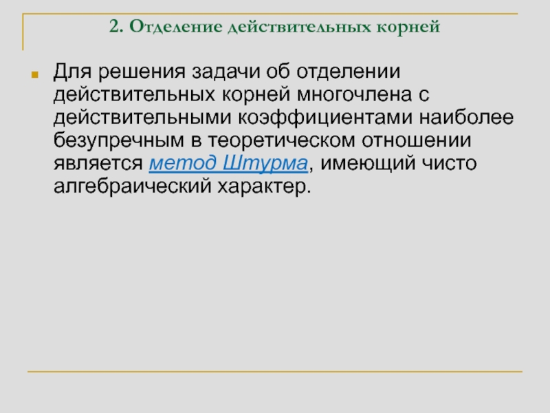 многочлена с действительными коэффициентами наиболее безупречным в теоретическом отношении является