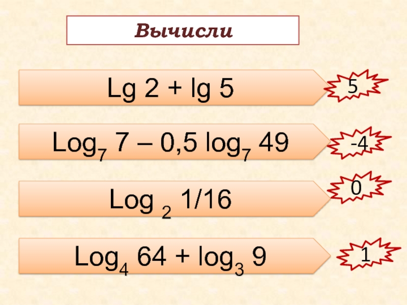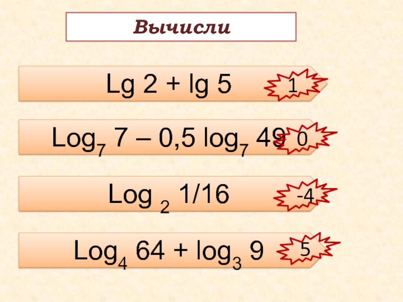 5) log 10 5 + log 10 2 = log 10 (5 + 2) = log 10 7