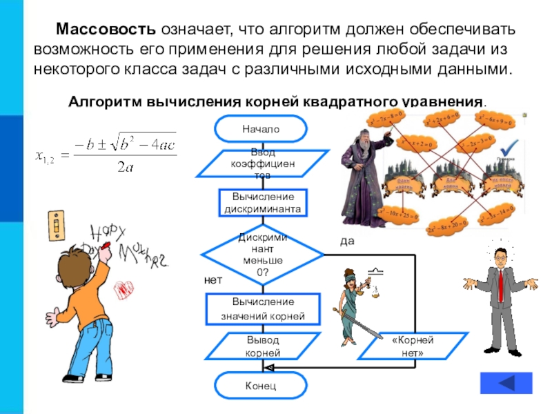 Алгоритм вычисления корней квадратного уравнения.