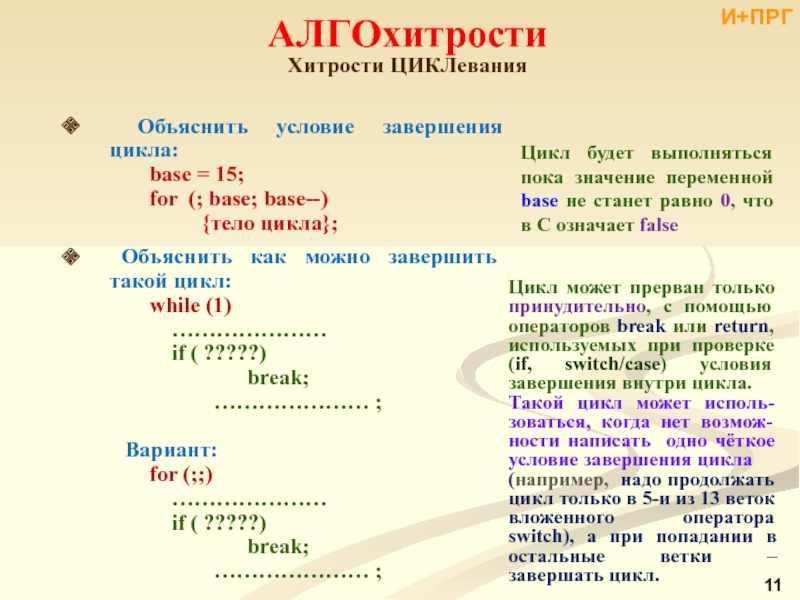 Рассмотрим некоторые из типовых алгоритмических приёмов