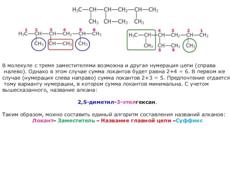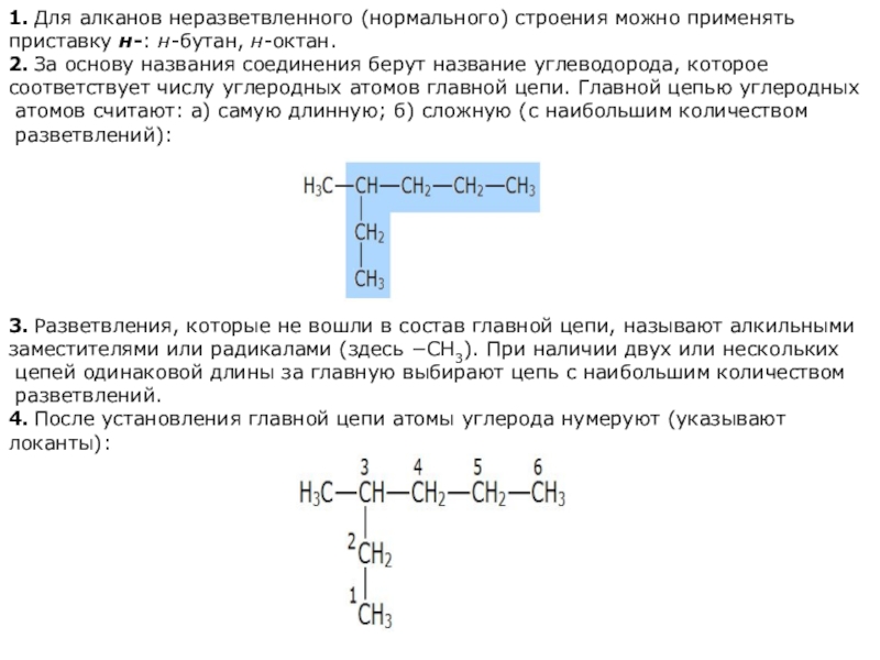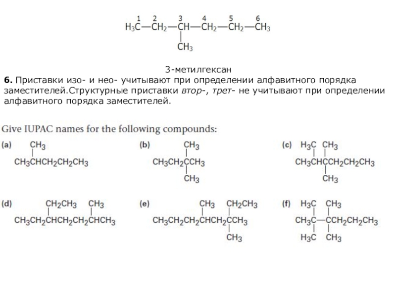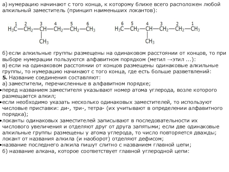 атомов главной цепи. Главной цепью углеродныхатомов считают: а) самую длинную; б) сложную (с наибольшим количеством