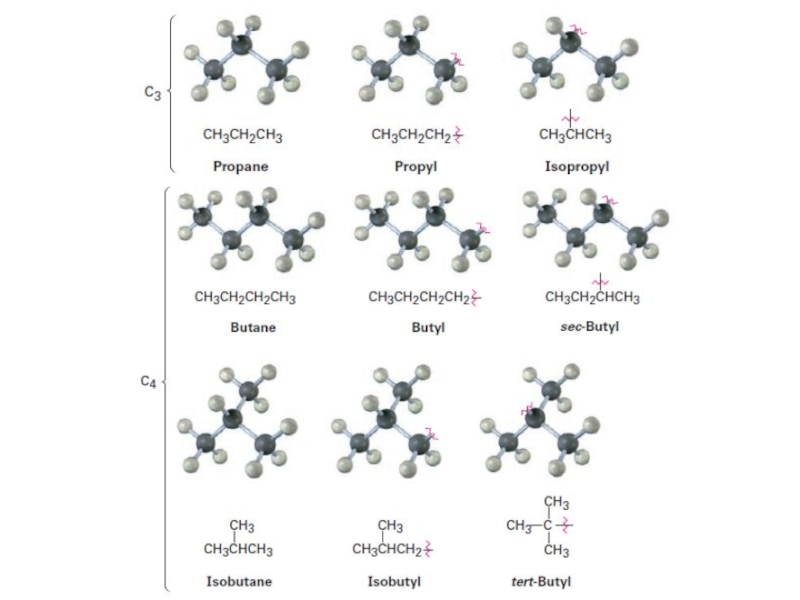 3. Разветвления, которые не вошли в состав главной цепи, называют алкильными