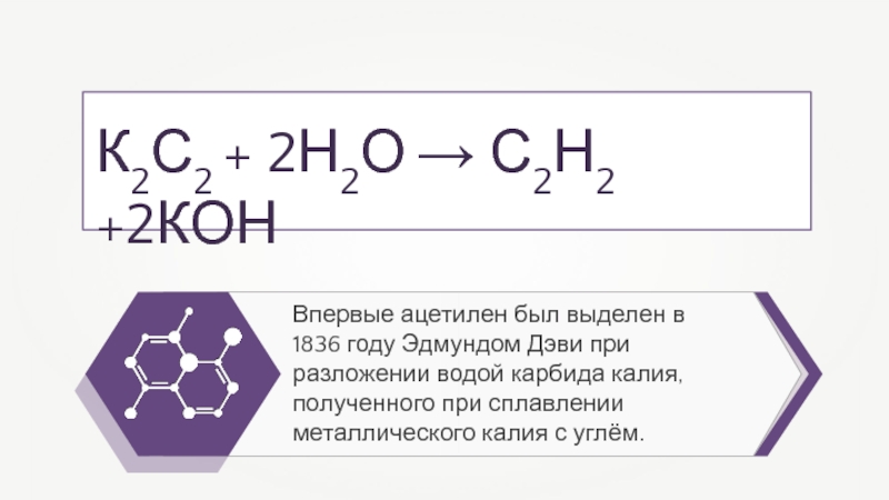 К2С2 + 2Н2О → С2Н2 +2КОН
