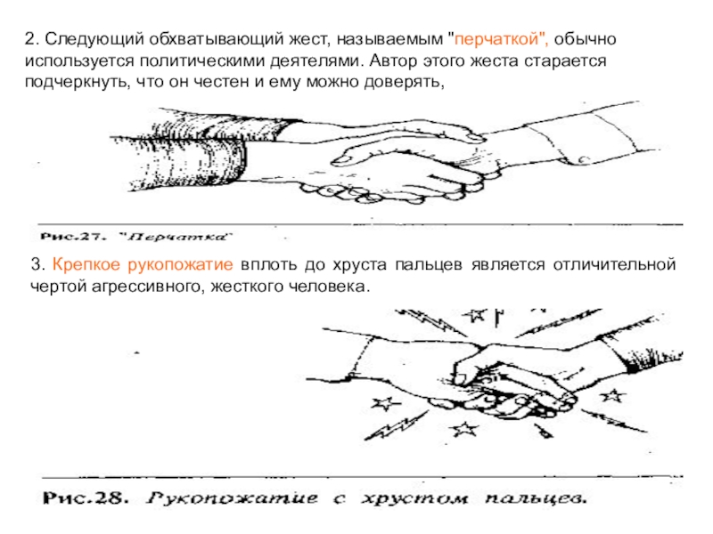 Слайд 402. Следующий обхватывающий жест, называемым "перчаткой", обычно используется политическими деятелями.