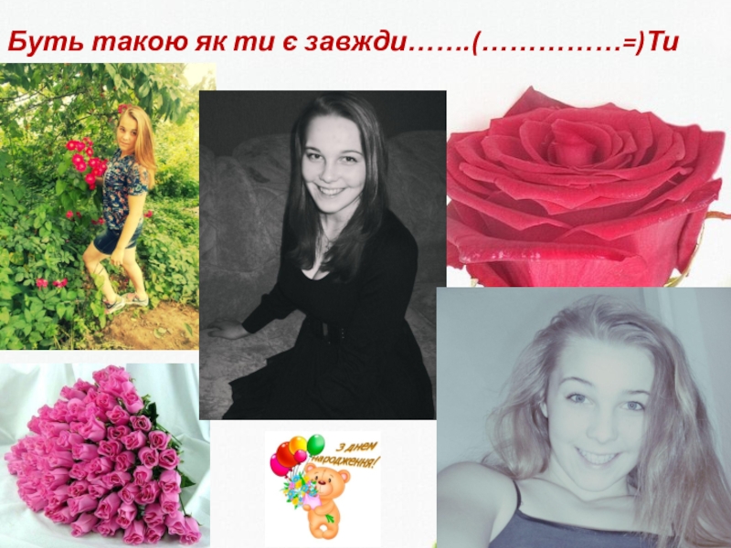 Слайд 4Буть такою як ти є завжди…….(……………=)Ти супер!