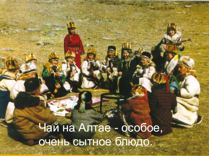 Слайд 3Чай на Алтае - особое, очень сытное блюдо.