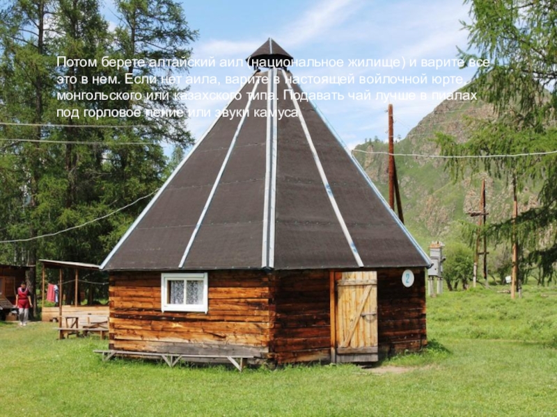 Слайд 2Потом берете алтайский аил (национальное жилище) и варите все это