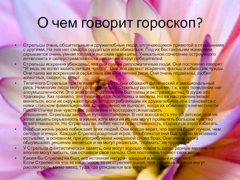 Каким бы Стрелец ни был, его истинная натура - щедрый и веселый идеалист.