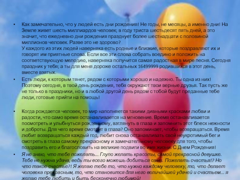 Слайд 12Как замечательно, что у людей есть дни рождения! Не годы,