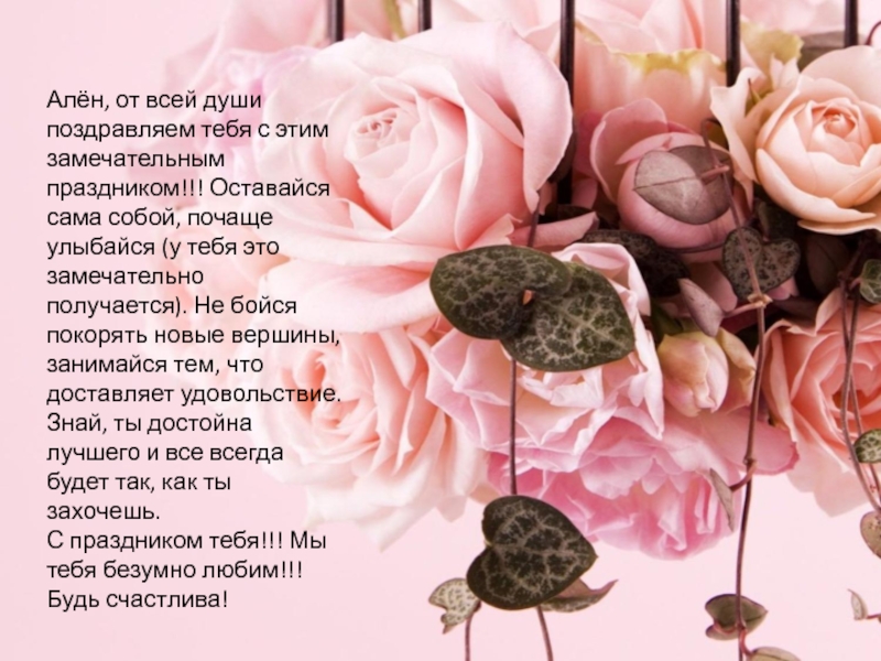 Слайд 15Алён, от всей души поздравляем тебя с этим замечательным праздником!!!
