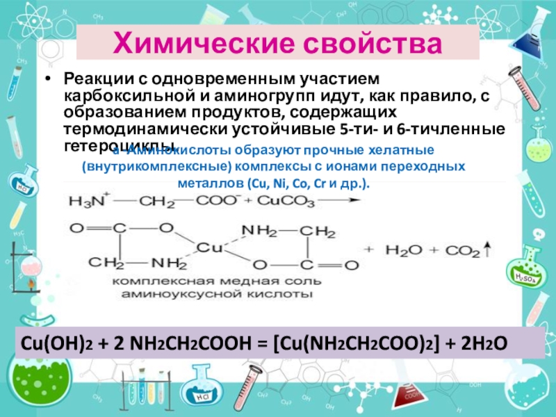 Cu(OH)2 + 2 NH2CH2COOH = [Cu(NH2CH2COO)2] + 2H2O