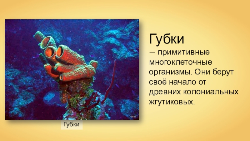 ГубкиГубки— примитивные многоклеточные организмы. Они берут своё начало от древних колониальных жгутиковых.Hanno