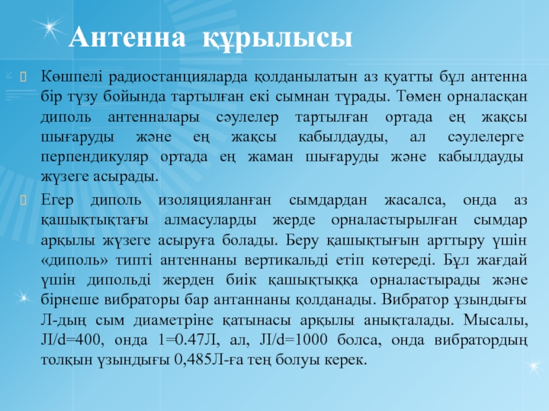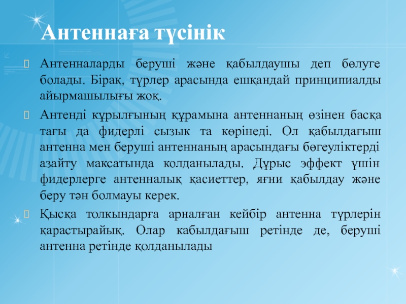 Слайд 6Антенаның негізгі параметрлері мен мінездемесі
