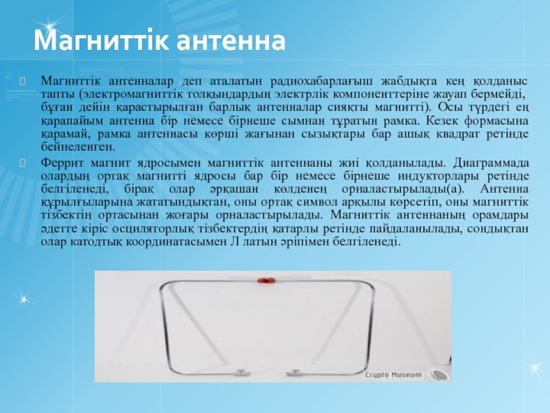 Магниттік антенналар деп аталатын радиохабарлағыш жабдықта кең қолданыс тапты