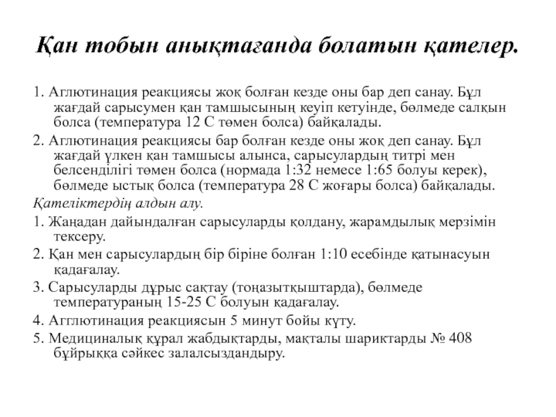 Слайд 12Қан тобын анықтағанда болатын қателер.