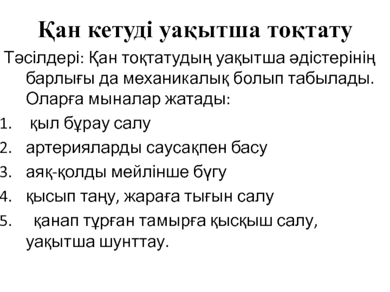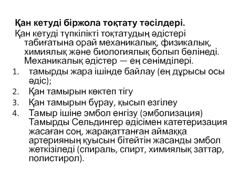Слайд 20Қан кетуді уақытша тоқтату