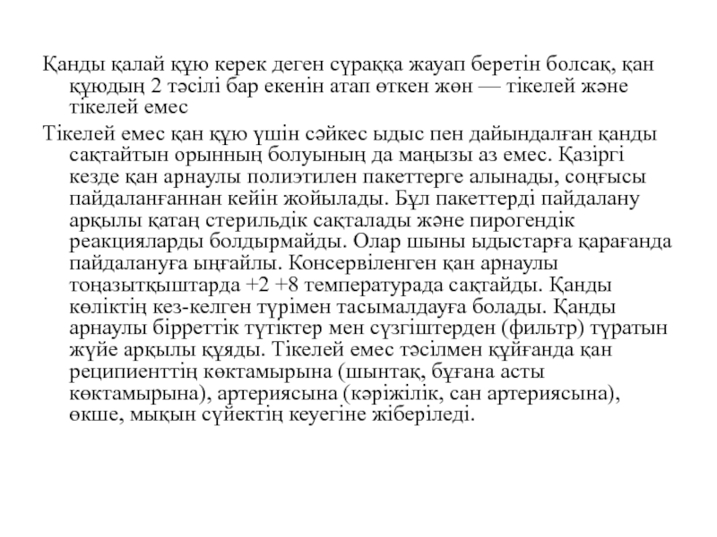 Слайд 17Қанды қалай құю керек деген сүраққа жауап беретін болсақ, қан