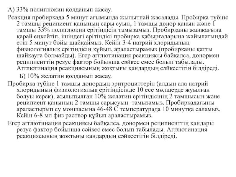 Слайд 16А) 33% полиглюкин қолданып жасау.