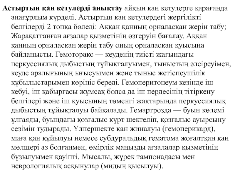 Слайд 30Астыртын қан кетулерді анықтау айқын қан кетулерге қарағанда анағұрлым күрделі.