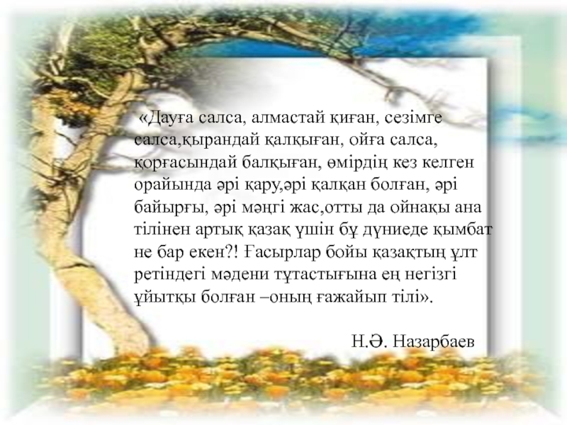 Слайд 17 "Туған тіл – тұғырың, туған тіл –қыдырың” дегендей,