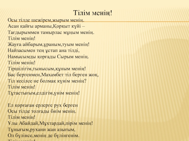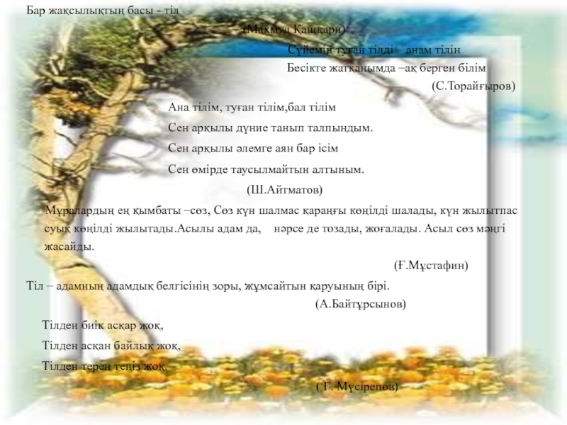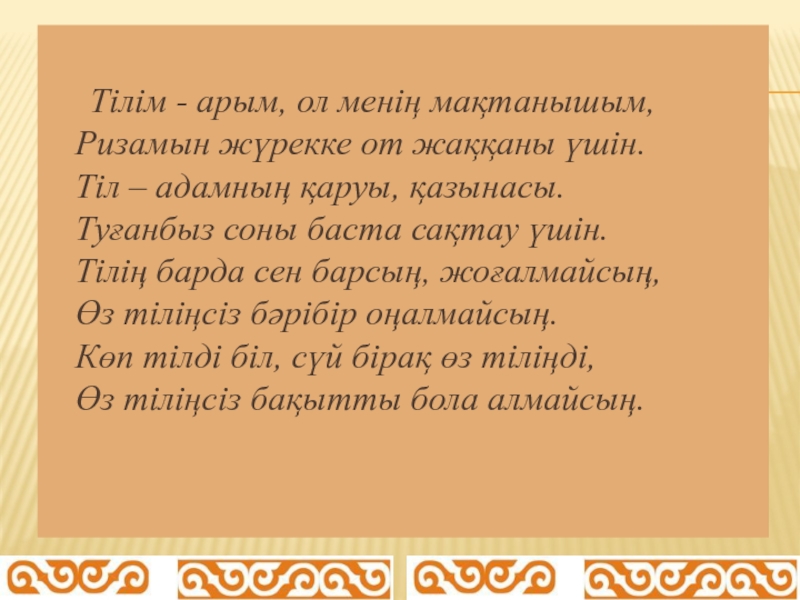 Слайд 10 Туған тілім қазынам,алтын кенім,