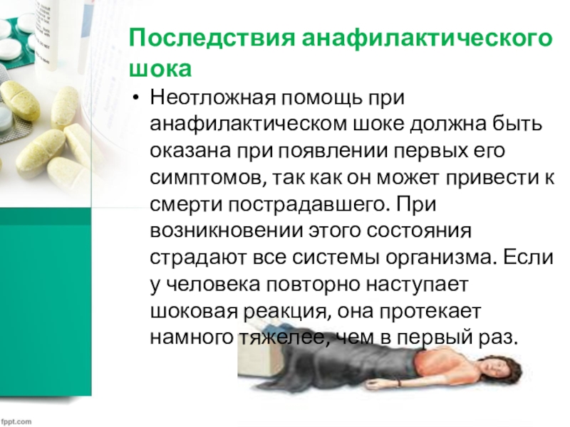 Слайд 13Доврачебная помощь при анафилактическом шоке должна быть оказана немедленно до