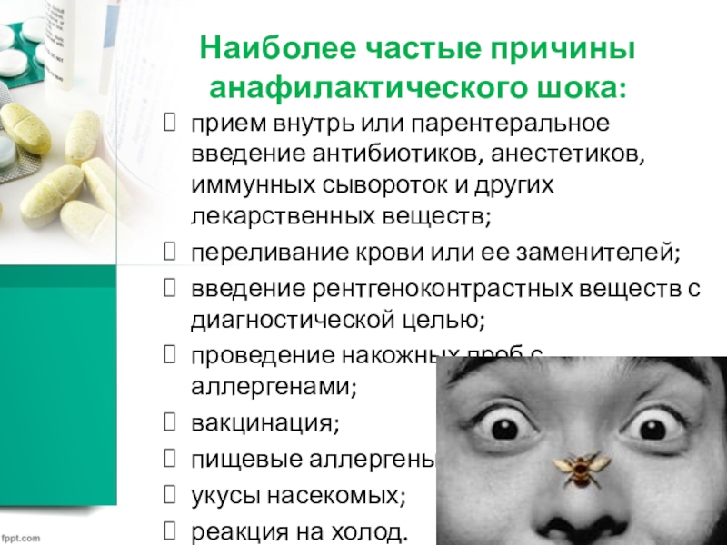 воздействие аллергена: проветрить помещение, прекратить введение препарата, наложить жгут выше места инъекции или укуса, обработать рану антисептиком, приложить холод.