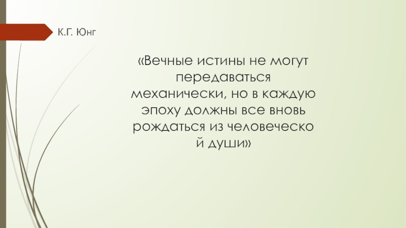 «Вечные истины не могут передаваться механически, но в каждую эпоху должны все вновь рождаться из человеческой души»К.Г. Юнг