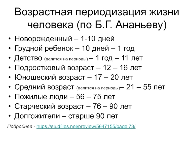 Слайд 4Возрастная периодизация жизни человека (по Б.Г. Ананьеву)