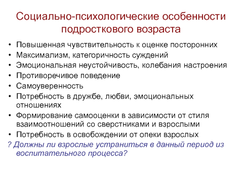 ? Должны ли взрослые устраниться в данный период из воспитательного процесса?