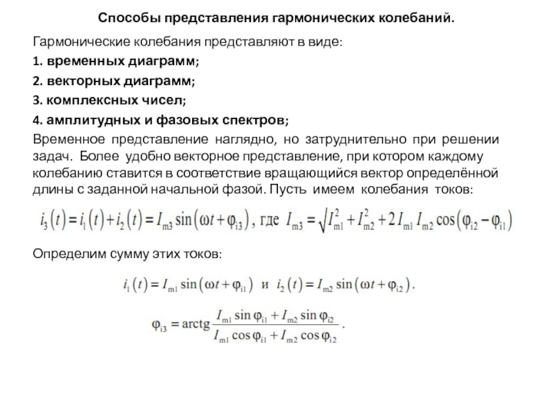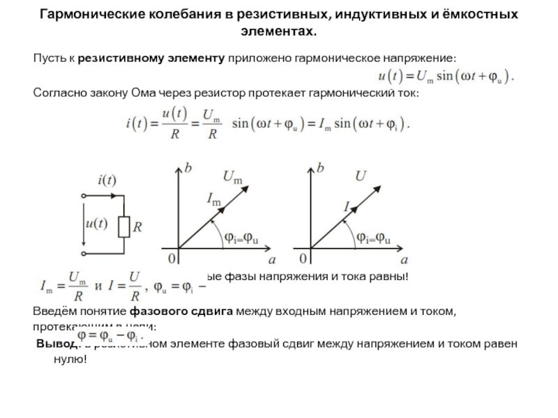 Способы представления гармонических колебаний. Гармонические колебания в резистивных, индуктивных и