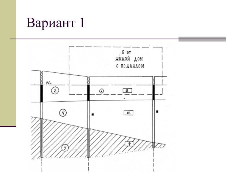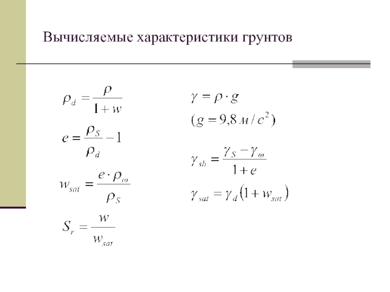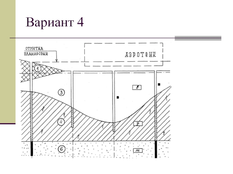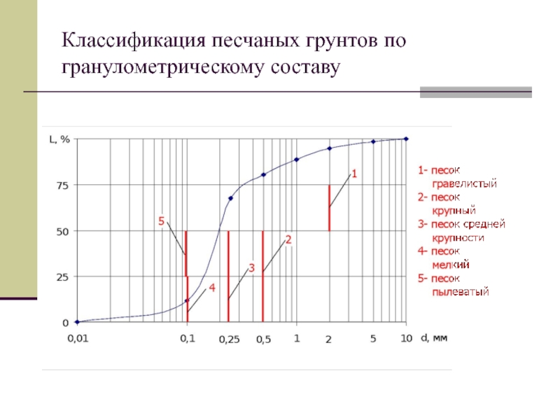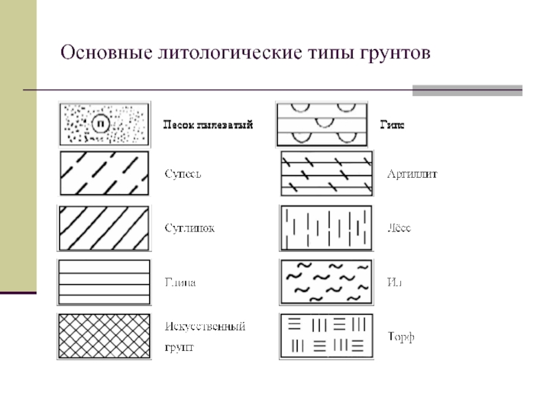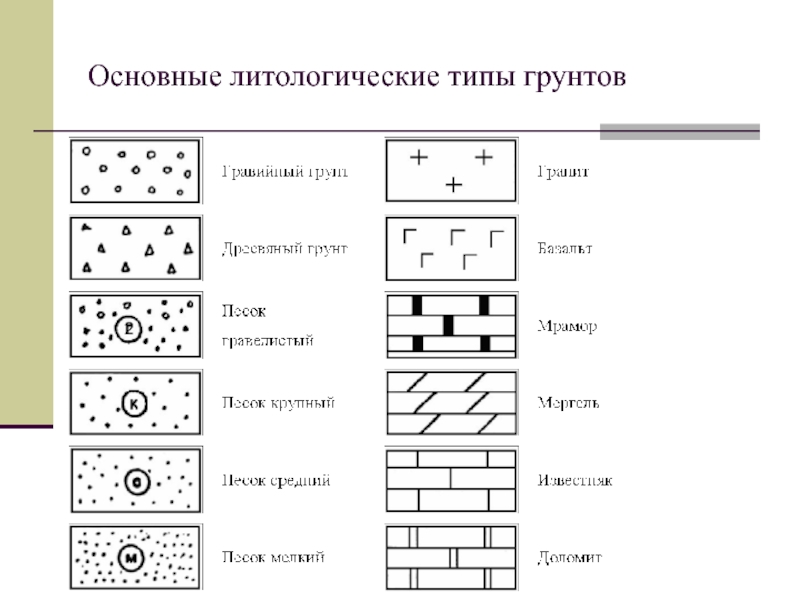 грансостава.Дать описание грунтов сверху вниз, используя приведенные и вычисленные характеристики, а также условные обозначения по штриховке разреза.