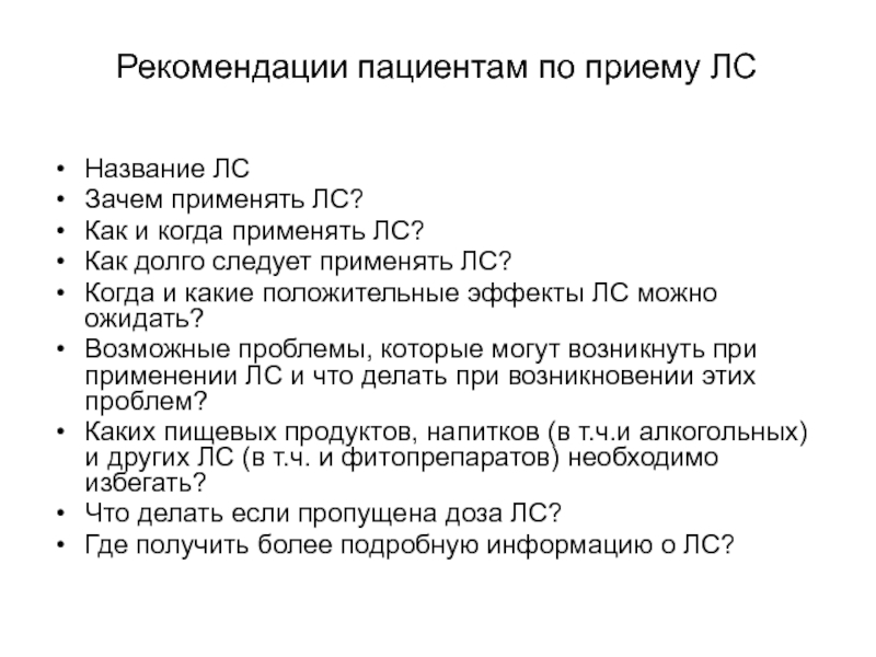 выбора базового ЛС;