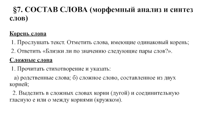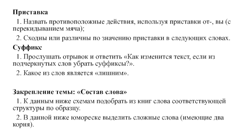 1. Прослушать отрывок и ответить «Как изменится текст, если из подчеркнутых слов убрать суффиксы?».