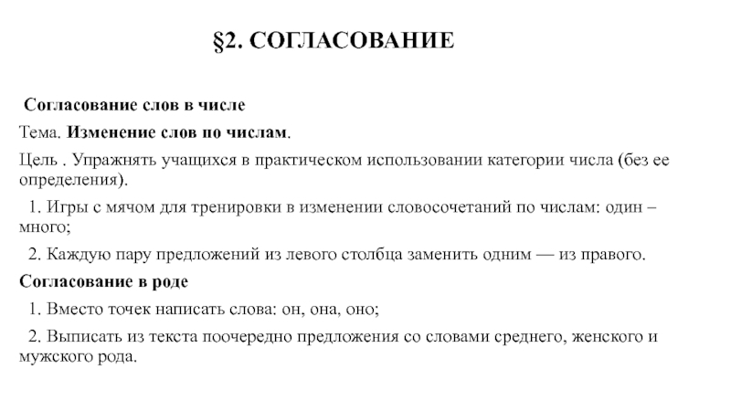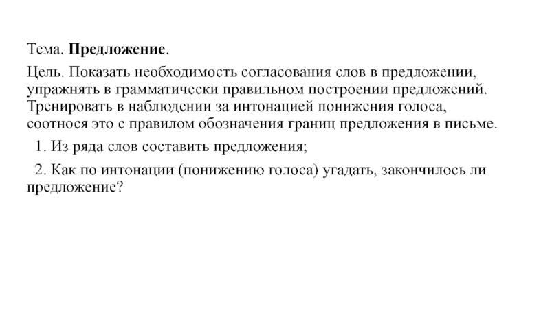 Цель. Показать необходимость согласования слов в предложении, упражнять