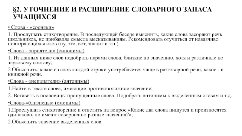 Обогащение фразовой речи учеников путем ознакомления их с явлением многозначности, синонимии, антонимии, омонимии синтаксических конструкций.