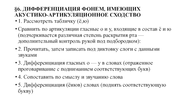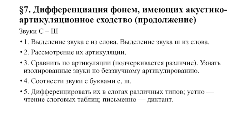 По акустико-артикуляционному сходству смешиваются обычно: парные звонкие и глухие согласные в четкой позиции; лабиализованные гласные; сонорные; свистящие и шипящие; аффрикаты смешиваются как между собой, так и с любым из своих компонентов.