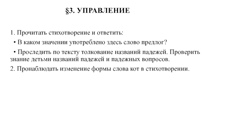 2. Пронаблюдать изменение формы слова кот в стихотворении.
