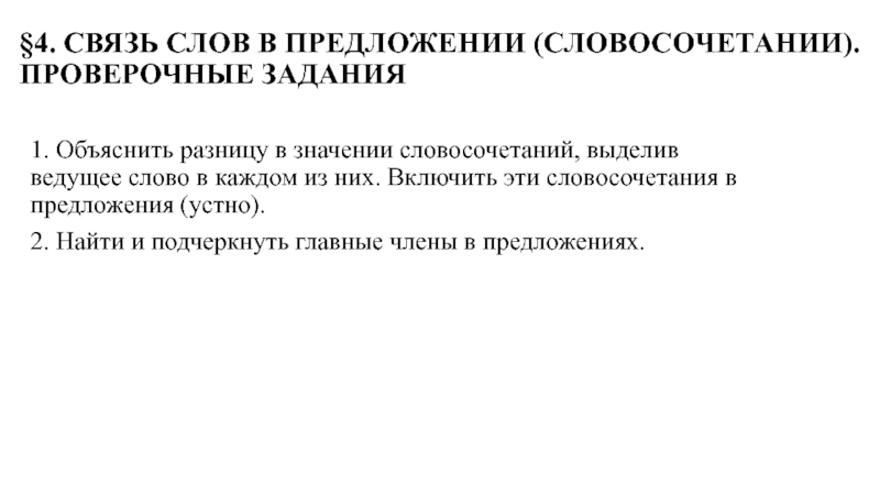 Слайд 71§4. СВЯЗЬ СЛОВ В ПРЕДЛОЖЕНИИ (СЛОВОСОЧЕТАНИИ). ПРОВЕРОЧНЫЕ ЗАДАНИЯ