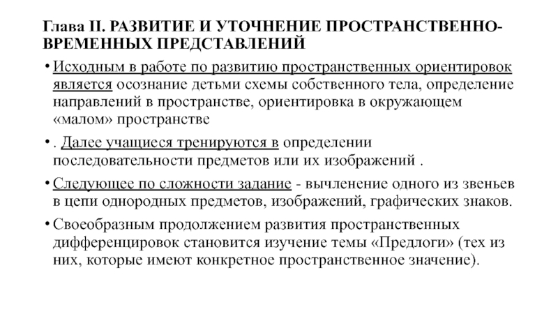 Глава ΙΙ. Развитие и уточнение пространственно-временных представлений.