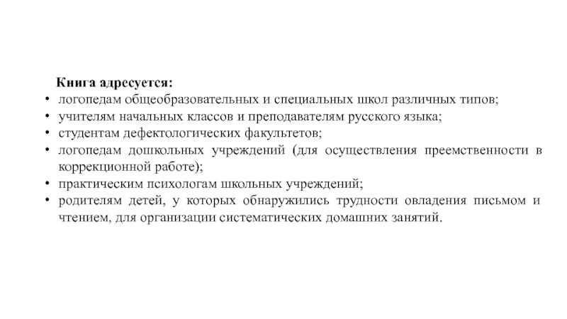 родителям детей, у которых обнаружились трудности овладения письмом и чтением, для организации систематических домашних занятий.