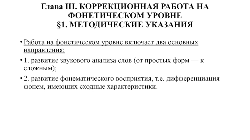 Глава ΙΙΙ. Коррекционная работа на фонетическом уровне.