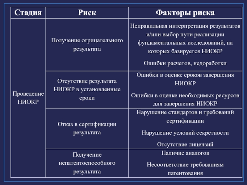 отсутствие единого унифицированного подхода к анализу и оценке рисков проектов НИОКР;