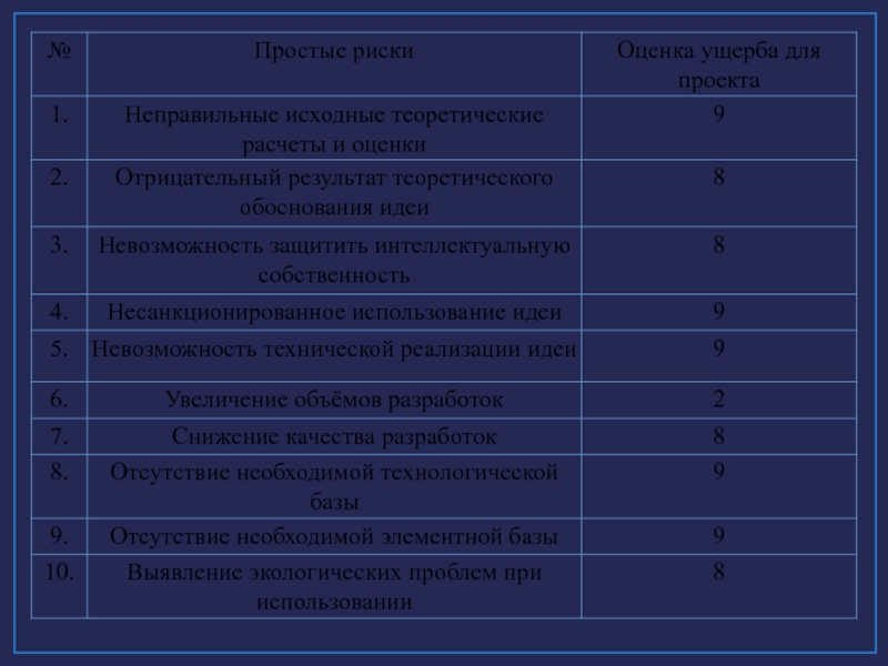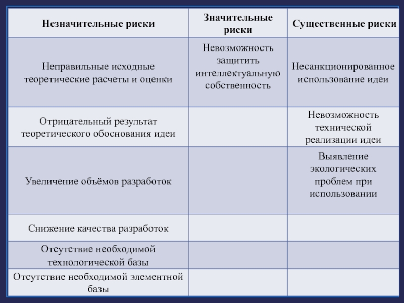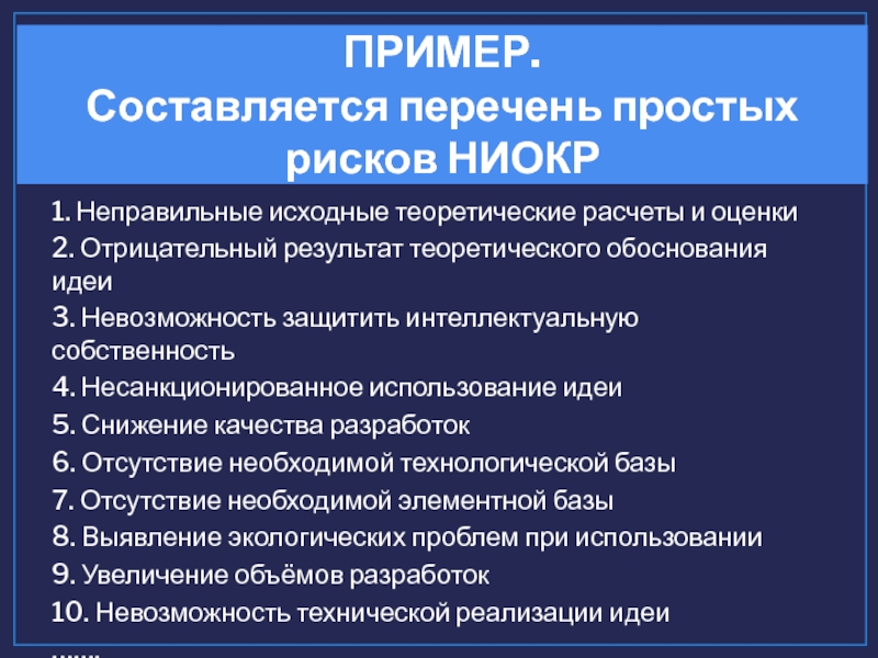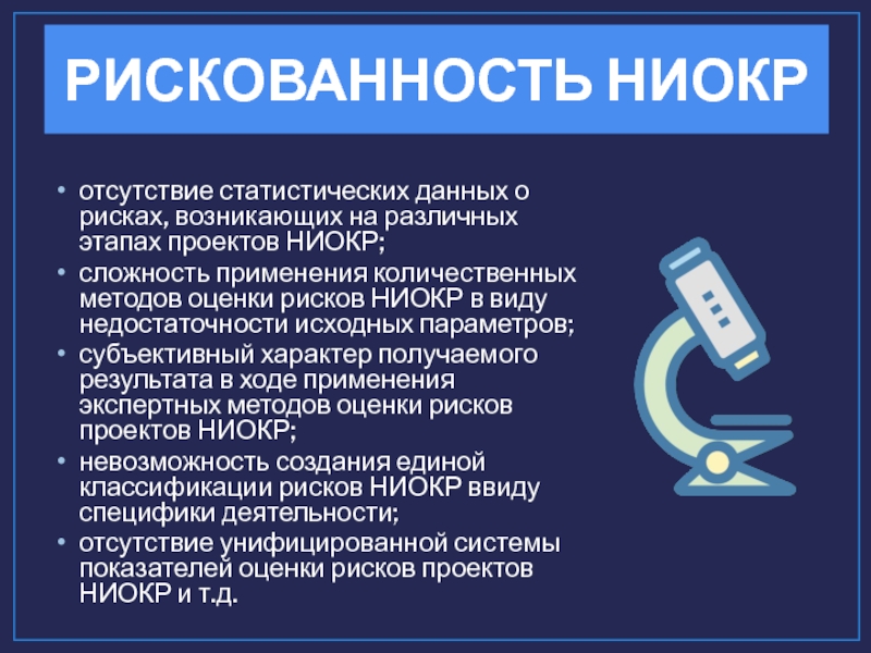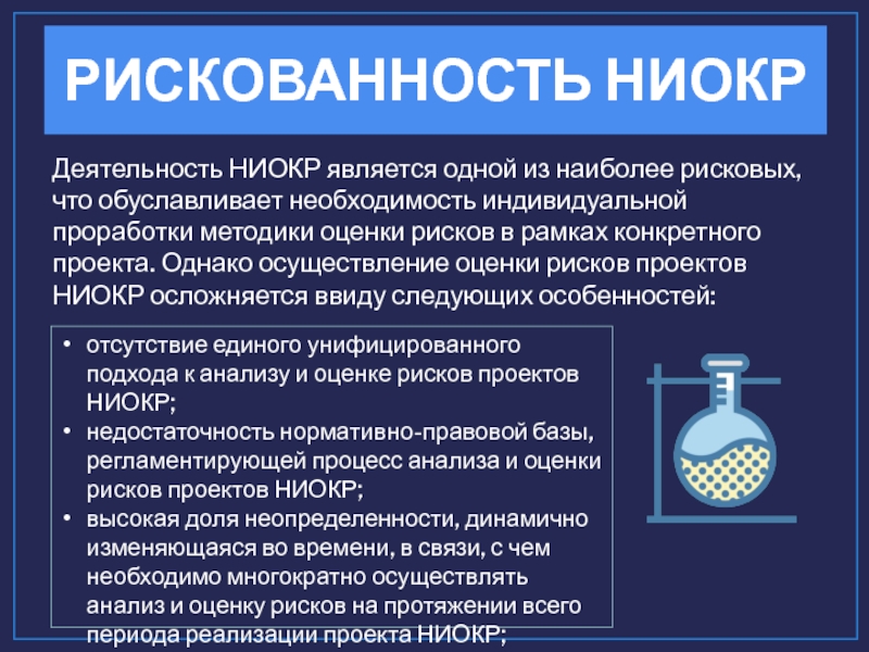 недостаточность нормативно-правовой базы, регламентирующей процесс анализа и оценки рисков проектов НИОКР;