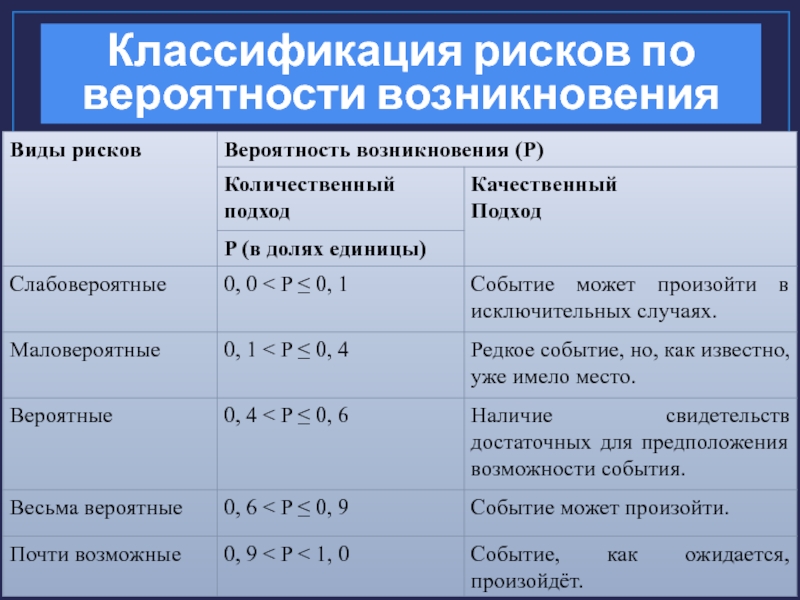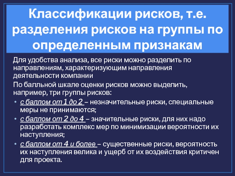Классификации рисков, т.е. разделения рисков на группы по определенным признакам